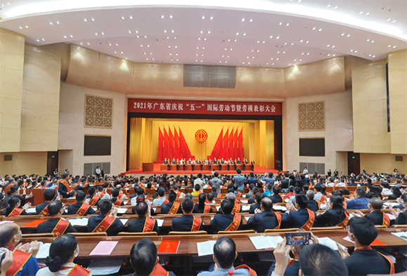 4月29日上午,廣東省慶?!拔逡弧眹H勞動節暨勞模表彰大會在廣州舉行。省委書記李希、省長馬興瑞、省人大常委會主任李玉妹等領導蒞臨參加會議,并和獲得者合影留念。省委常委、組織部部長張義珍出席會議并講話,省人大常委會副主任、省總工會主席呂業升主持會議,副省長張新宣讀表彰決定。