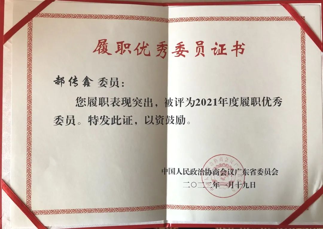 會(huì)上,廣東省政協(xié)對(duì)43件優(yōu)秀提案、21名履職表現(xiàn)突出的委員予以表彰。廣東省新的社會(huì)階層人士聯(lián)合會(huì)副會(huì)長(zhǎng)、中華全國(guó)專(zhuān)利代理師協(xié)會(huì)副會(huì)長(zhǎng)、廣東專(zhuān)利代理協(xié)會(huì)會(huì)長(zhǎng)、三環(huán)總經(jīng)理郝傳鑫榮獲政協(xié)廣東省委員會(huì)“2021年度履職優(yōu)秀委員”稱(chēng)號(hào)。