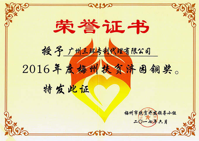 為樹立典型,弘揚善舉,進一步推動梅州市深入開展扶貧濟困工作,梅州市扶貧濟困領導小組對三環授予了“2016年度梅州扶貧濟困銅獎”并贈予錦旗,表彰三環在扶貧濟困工作中做出的突出貢獻。