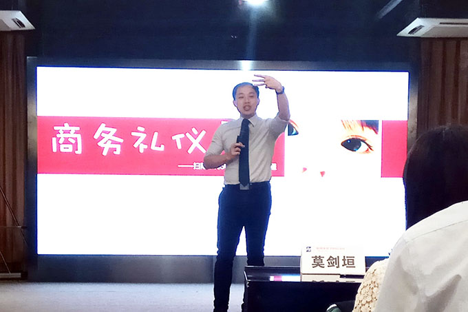 商務(wù)禮儀培訓(xùn)由平安產(chǎn)險(xiǎn)廣東分公司培訓(xùn)部主任莫?jiǎng)υ珣?yīng)邀擔(dān)任講師。他針對(duì)商務(wù)人士的職業(yè)形象、舉止儀態(tài)、商務(wù)洽談、宴請(qǐng)接待等內(nèi)容進(jìn)行系統(tǒng)的講解,讓與會(huì)者對(duì)商務(wù)禮儀中各個(gè)不容忽視的細(xì)節(jié)有了更深的認(rèn)識(shí),也使大家意識(shí)到商務(wù)禮儀在日常工作中具有的重要意義。